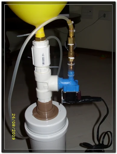 - 1 válvula anti retorno (dessas de bombas de ar para aquário) para evitar que a água do equipo desça.